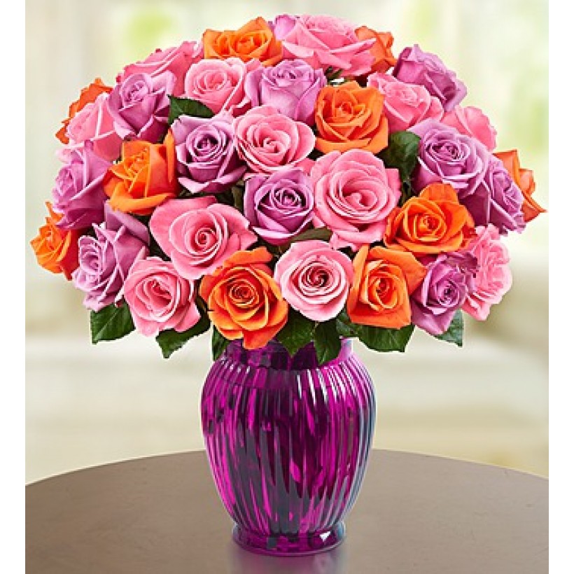 Our refreshing mix of roses in pretty pastel shades of 24 pink, orange and lavender sprayed is the best way to send a smile.