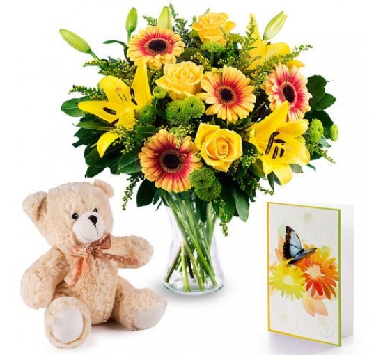 this radiant yellow gift. A bouquet of flowers in shades of yellow and